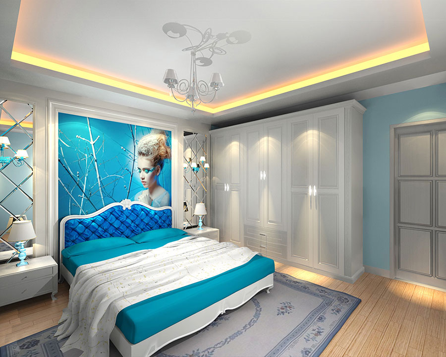清新淡雅的顏色與純白色的衣柜,整體造型更顯別致優(yōu)雅。淡藍色大面積使用,整體布局更顯浪漫清新。造型別致的吊燈使用,更加強了整體的流露,也更加凸顯主人對生活品質(zhì)有極高的追求。