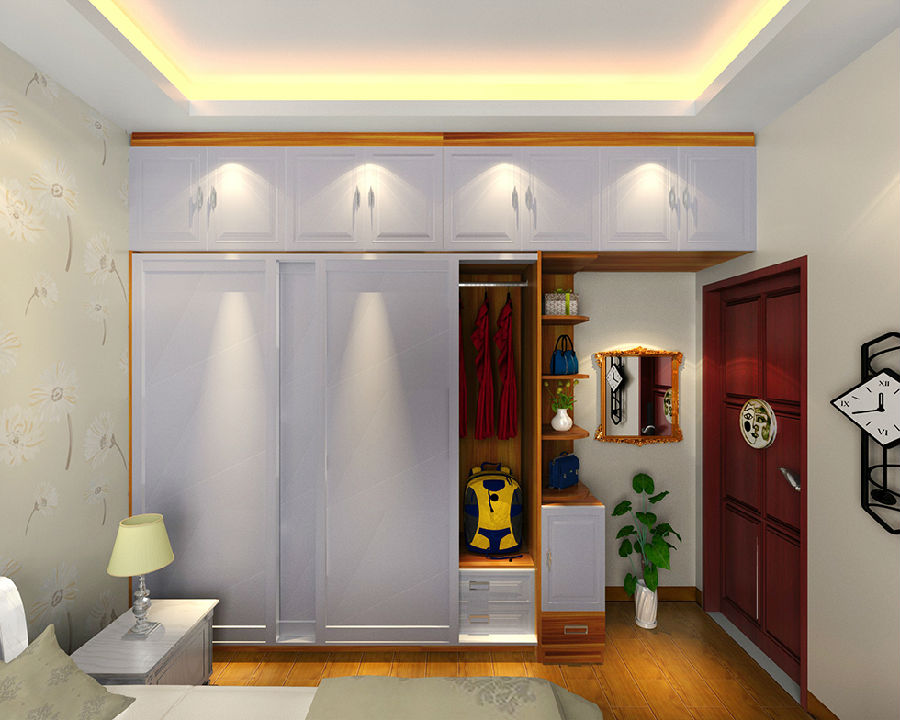 清新淡雅的莫蘭迪配色,讓整個(gè)視覺更加飽滿。純白色的衣柜顏色,讓整體布局更顯寬闊,也更具有空間感,視覺體驗(yàn)上也多了一份高雅,在燈光的照耀下,更加清新脫俗。