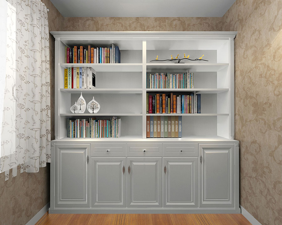 開(kāi)放式的空間造型,更能凸顯美式的自由與奔放,同時(shí)整體空間也更顯寬闊。純白素雅的色彩,襯托地書(shū)桌更加大氣磅礴,沒(méi)有過(guò)于復(fù)雜的裝飾,一切都是那么渾然天成。