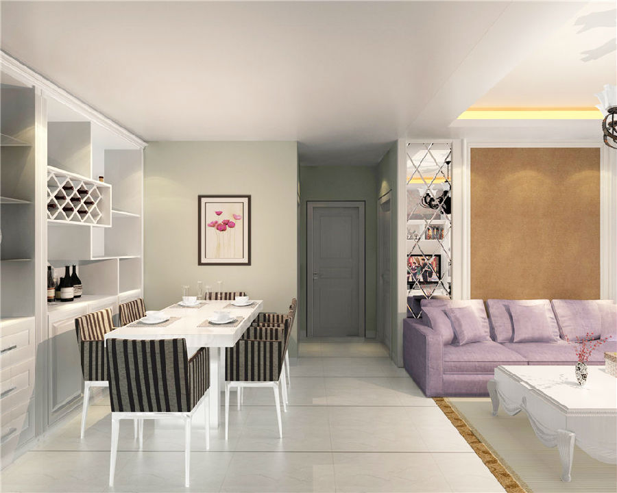 整體色彩采用純白色系,大面積的使用,使整體格局顯得十分整潔與開(kāi)闊,空間十足,純白色的酒柜與整體風(fēng)格相呼應(yīng),在收納面積增大的同時(shí),也展現(xiàn)了收納的美學(xué)。