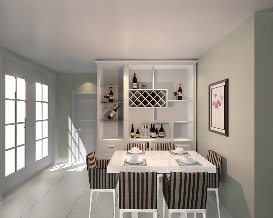 從整體布局來(lái)看,雅致白充斥著整個(gè)空間,條紋色布藝搭配,讓整體空間不顯單調(diào),純色的酒架設(shè)計(jì),使整個(gè)空間更加整潔素雅,白色的大面積使用,凸顯空間的一塵不染。