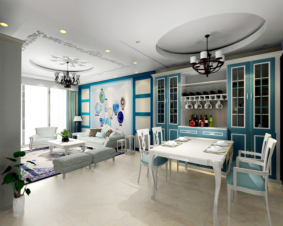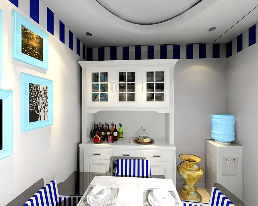 首先被吸引的就是色彩的搭配,顏色大膽卻不會(huì)覺得過于浮夸,在圓形吊頂?shù)囊r托下,一切渾然天成,精致的餐桌與餐椅交相輝映,極簡(jiǎn)中透露出一股子小清新。